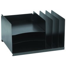 Keep your files organized and off your desk. Angled design allows you to see all documents at once. Five compartments for your files, records and notes. Black.
