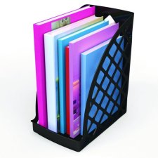 Stores magazines, catalogues, file folders, project binders and text books. Holds letter sized materials. Contains 65% recycled content. Size: 4"W x 11"D x 12 3/4"H. Colours: red, yellow and blue. 3 per package.