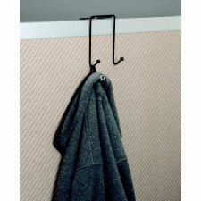 Save space and reduce clutter by utilizing doors and panels. Double hooks with ball tips. Greenguard certified. Over-the-Door. Fits over doors up to 1-3/4" thick. Satin aluminum finish.