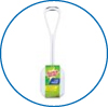 18" brush with soft grip holder. Resistant to stains, odours, bacteria, fungi, and wear. Ideal for commercial, medical, and industrial applications. Hole in the plastic handle allows for easy hanging. White.